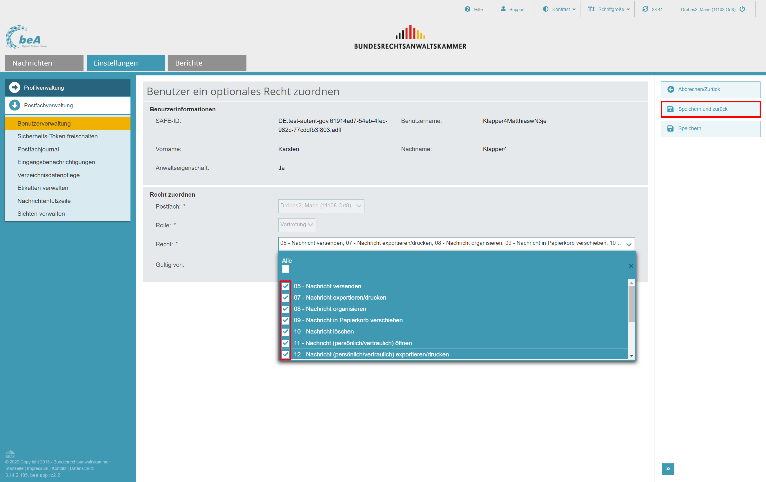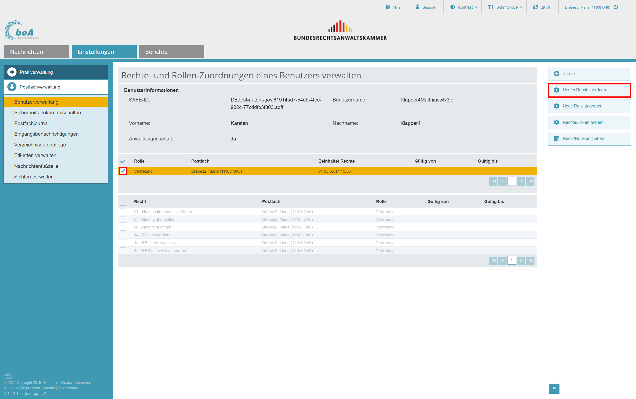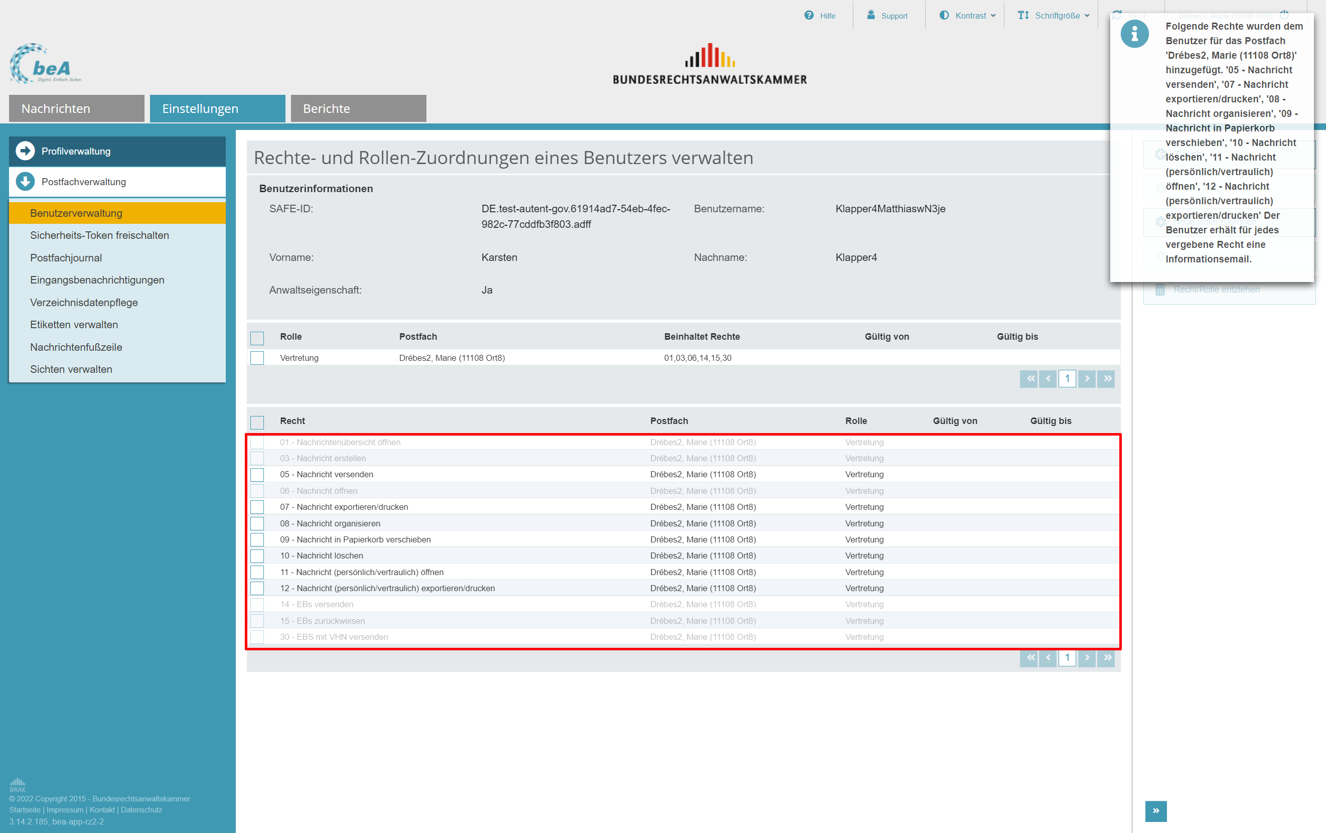 Mit der beA-Version 3.14 werden zwei neue Rechte eingeführt: