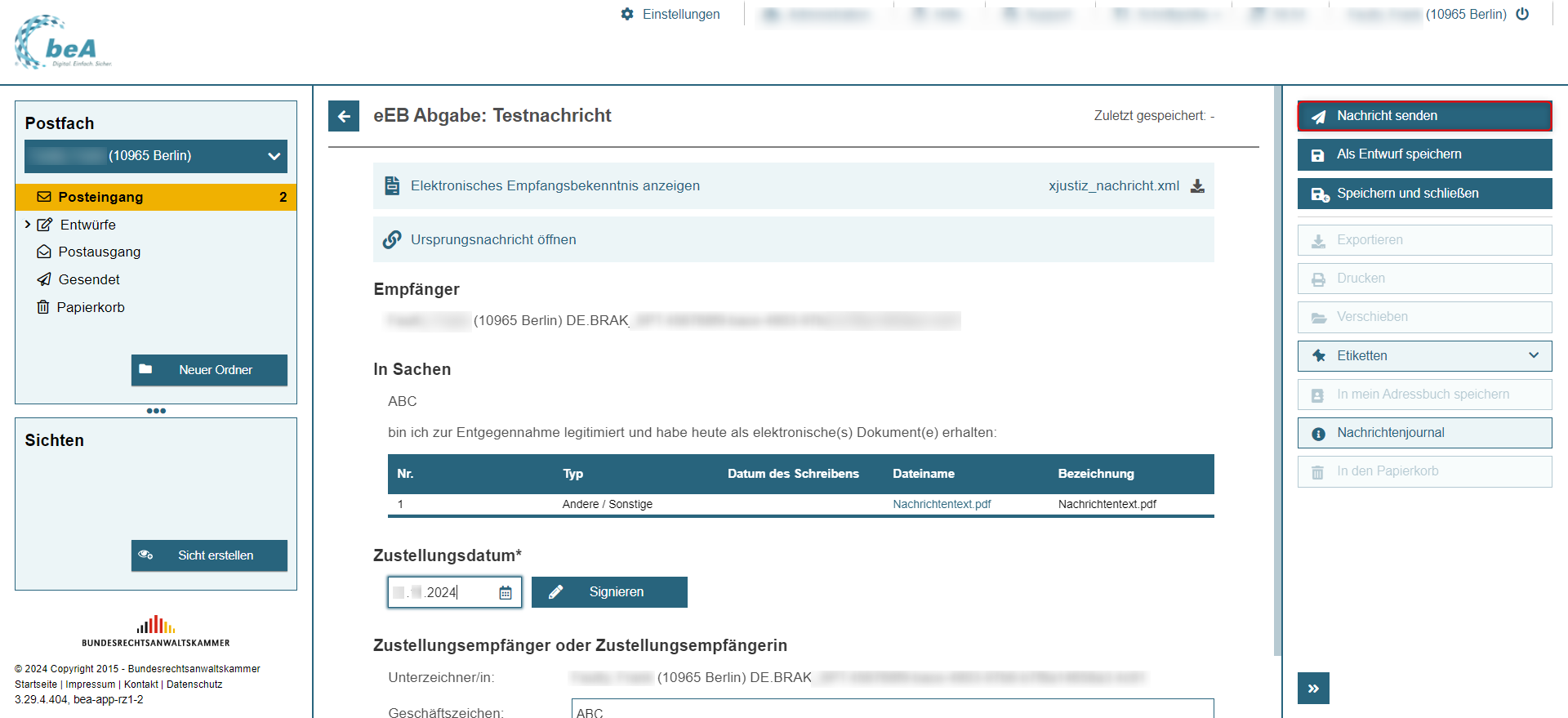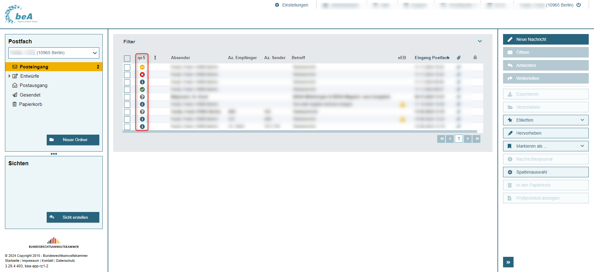 Dieses Ergebnis wird Ihnen insbesondere dann angezeigt, wenn Sie sich entschieden haben, die Nachricht über den sicheren Übermittlungsweg zu versenden und auf die qeS zu verzichten.