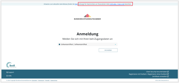 Die BRAK hatte über alle zur Verfügung stehenden Kanäle versucht, die Ergänzung des § 87a Abs. 1 AO zu verhindern, was – wie berichtet – leider nicht gelungen ist. Wir möchten Sie daher zur Vermeidung von Haftungsfällen auf die Neuregelung aufmerksam machen. Die beA-Startseite enthält in der Kopfzeile ebenfalls einen Hinweis auf § 87a Abs. 1 Satz 2 AO n.F..
